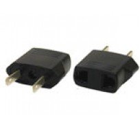 Kontakt av typ A, eluttag av typ B. Typ A har två hål, typ B har ett tredje för jordning). Observera att denna adapter inte omvandlar spänning och frekvenser utan endast ska användas för fysisk kompatibilitet.