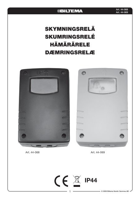 Användningsområde: Utomhus, för styrning av mindre belysningsanläggningar. Utförande: Hus av ABS-plast. Inställning av funktioner med vred under täcklock, låst med fyra skruv. Tryckknapp för inställning av nattsparfunktion och ljusnivå.