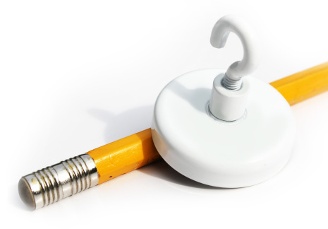Vi upplever att man köper alltför svaga magnetkrokar till upphängning av kalendrar. Det indirekta draget gör att man ska använda en betydligt starkare magnet. Så här räknar du: När en vikt pressar neråt skal man multiplicera vikten på föremålet med fyra. Superstark magnet med krok håller ordningen!